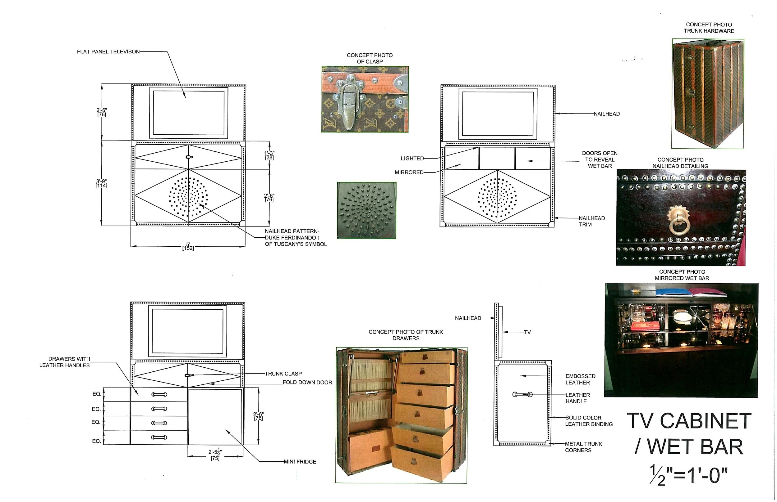 CUSTOM TV/ CABINET TO BE BUILT AND INSTALLED IN THE ROOMS OF CASTELLO DI CASOLE IN TUSCANY, ITALY